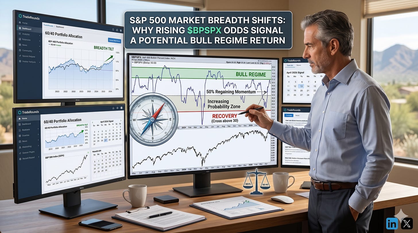 The Risk Management Clause: Because the $BPSPX has a “bearish blindspot,” the 40 percent bond or cash cushion remains your primary defense, do not wait for a $BPSPX cross below 50 to protect capital, instead, use that signal only as a final confirmation that the regime has officially shifted to defensive.