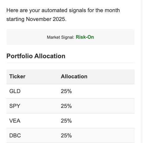 TradeRounds Newsletter Monthly Model Signals November 2025Peter B Richman MD MBANov 03, 2025ShareTradeRounds Risk Management PortfolioThanks for reading TradeRounds Newsletter! Subscribe for free to receive new posts and support my work.SubscribeThanks for reading TradeRounds Newsletter! Subscribe for free to receive new posts and support my work.Subscribe